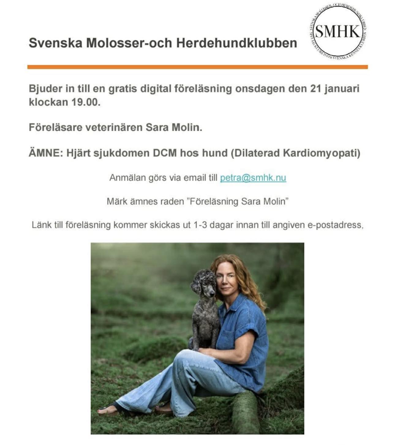 Svenska Grand Danois klubben bjuder tillsammans med SMHK in alla medlemmar till gratis digital föreläsning om hjärtsjukdomen DCM.